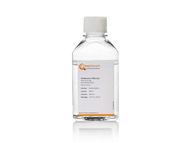 Phosphate-buffered saline or PBS buffer is a water-based salt solution widely used in cell culture applications, e.g. for maintenance of pH, dilution of substances, or rinsing of cell containers. Also known as Dulbecco's Phosphate-Buffered Saline (DPBS), PBS is non-toxic and provides cells with water and inorganic ions, which are necessary for cell metabolism. The osmolarity and ion concentrations of PBS solutions are meant to mimic the isotonic milieu of the human body. This formulation of PBS comes without Ca & Mg and without Phenol Red. The concentration of the solution is 1X.