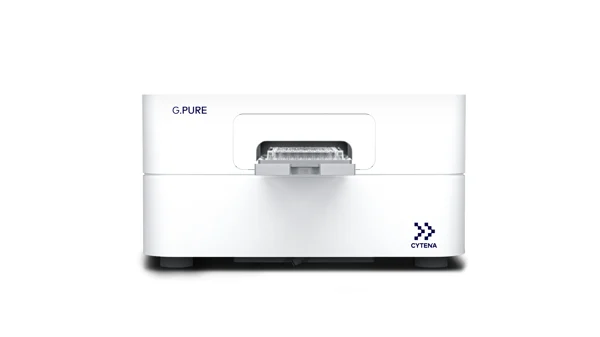 The G.PURE provides a user-friendly alternative to complex automation and error-prone manual pipetting. Using an integrated dispenser and novel centrifugal evacuation technology, the product enables fast, reproducible, and tip-free bead washes and resuspension.