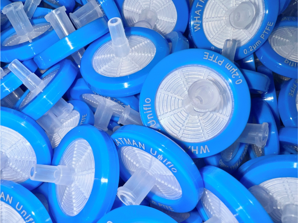 Whatman™ Uniflo™ non-sterile PTFE syringe filters are disposable filter units designed to provide clean filtrate from small volumes up to 100 mL. They are available in a variety of membrane choices with a polypropylene overmold housing.