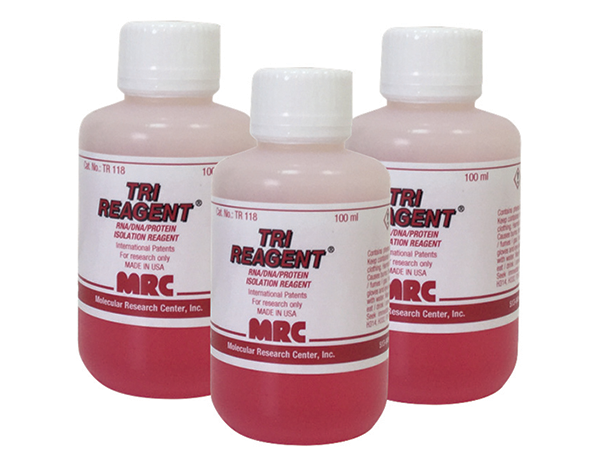 TRI Reagent® is used for RNA isolation from tissues, pelleted cells and cells grown in monolayer. Fifty milliliters is sufficient to process 50 samples, each containing 50 – 100 mg of tissue. Expected yields range from 50 – 700 μg of RNA per sample, depending upon the tissue source.