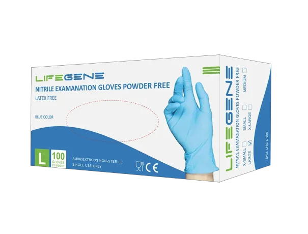 BLUE NITRILE EXAMINATION GLOVES POWDER FREE Size L/ box of 100