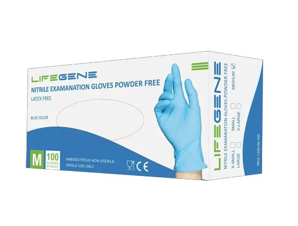 BLUE NITRILE EXAMINATION GLOVES POWDER FREE Size M/box of 100