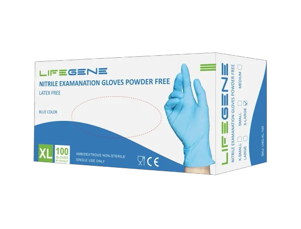 BLUE NITRILE EXAMINATION GLOVES POWDER FREE Size XL/boxof 100