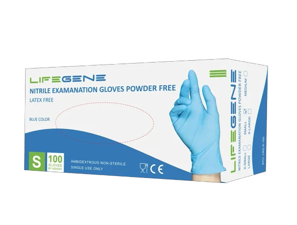 BLUE NITRILE EXAMINATION GLOVES POWDER FREE Size Sl/box of 100